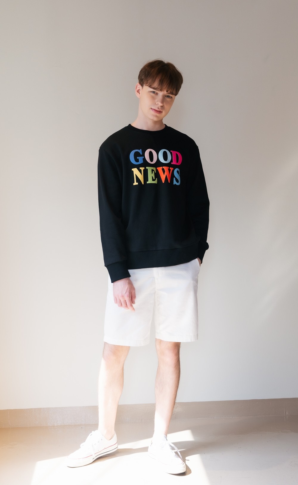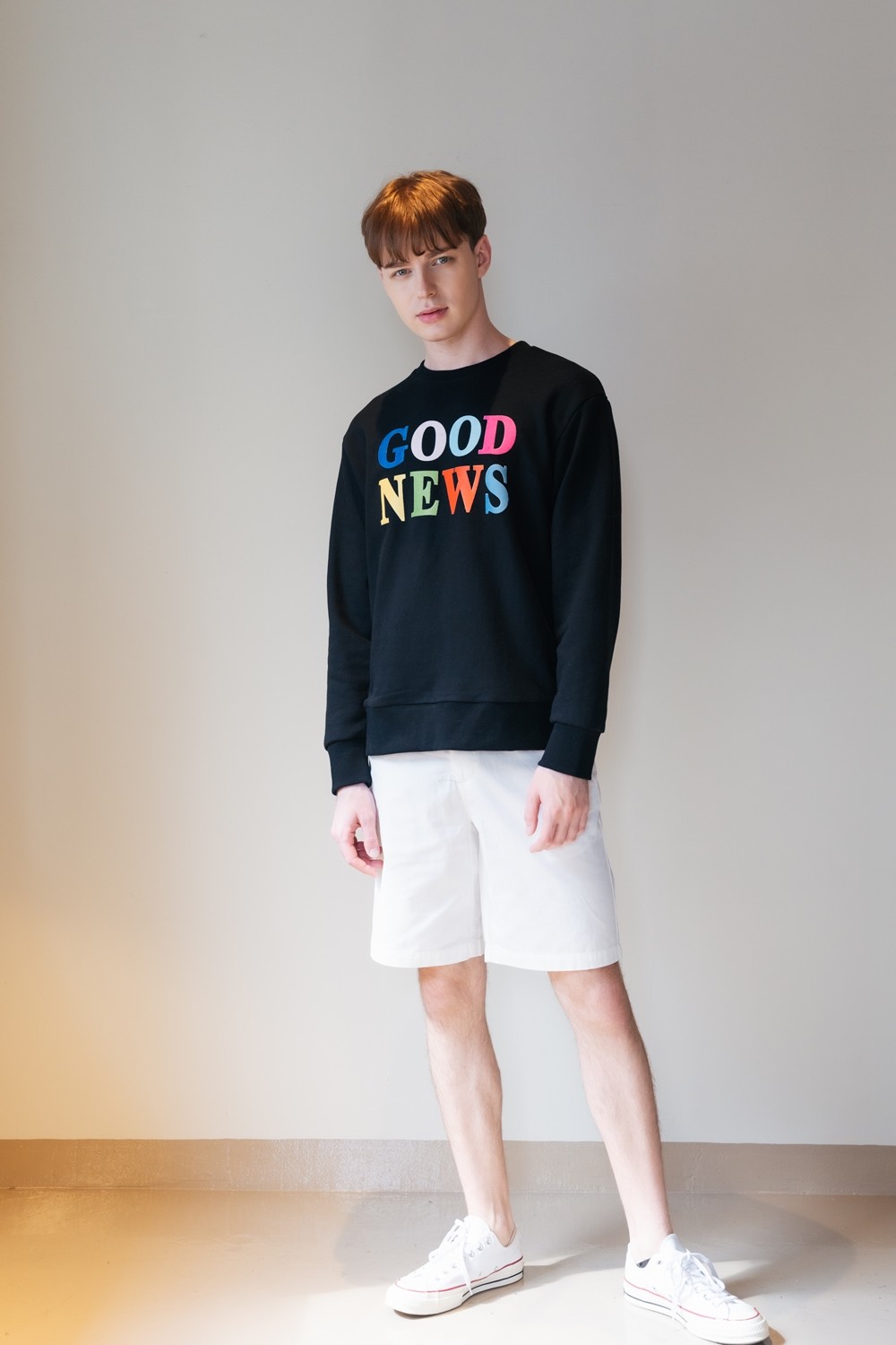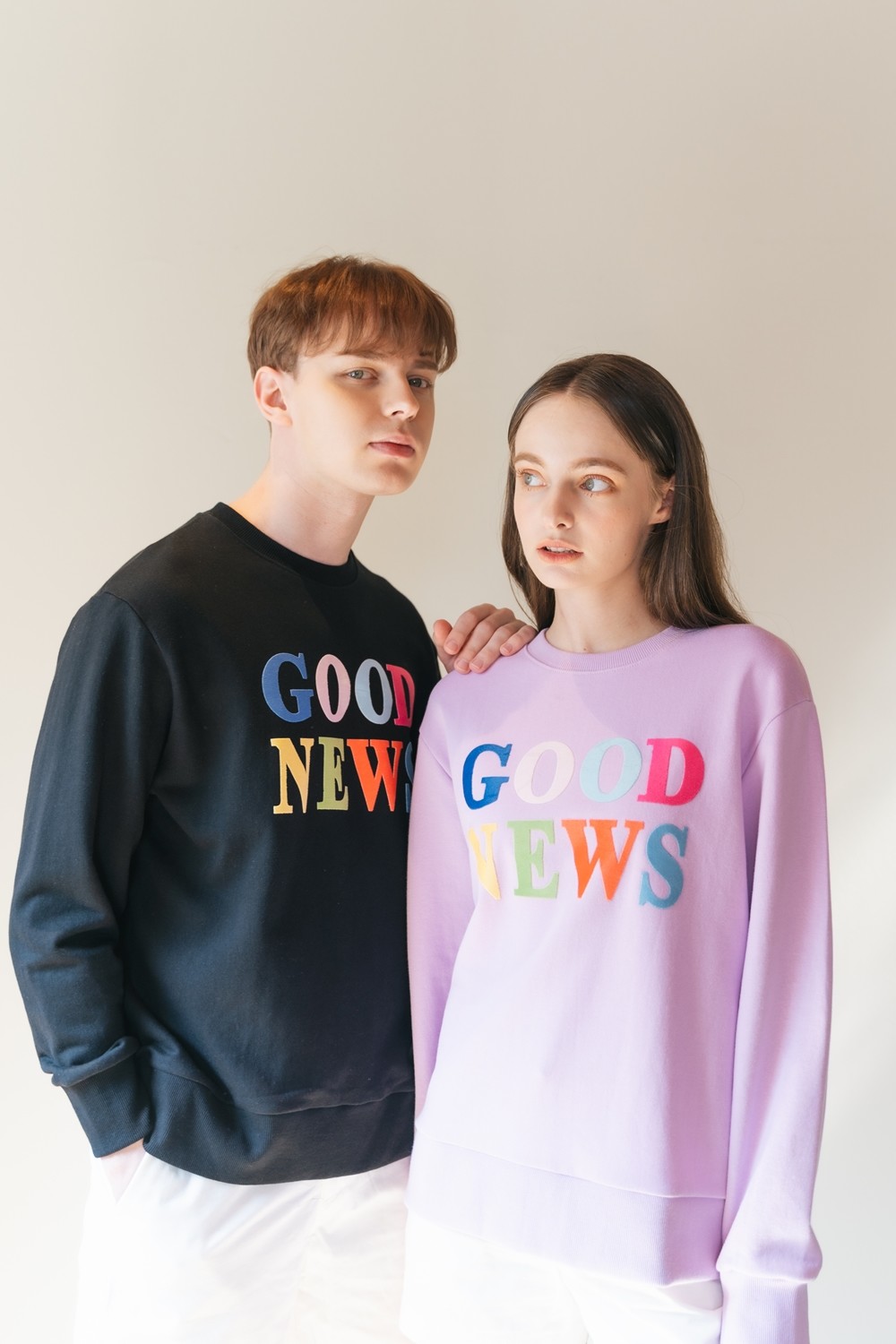 GOOD NEWS 맨투맨은 100% 천연 면 소재를 사용한 쭈리 원단으로 제작하였습니다.