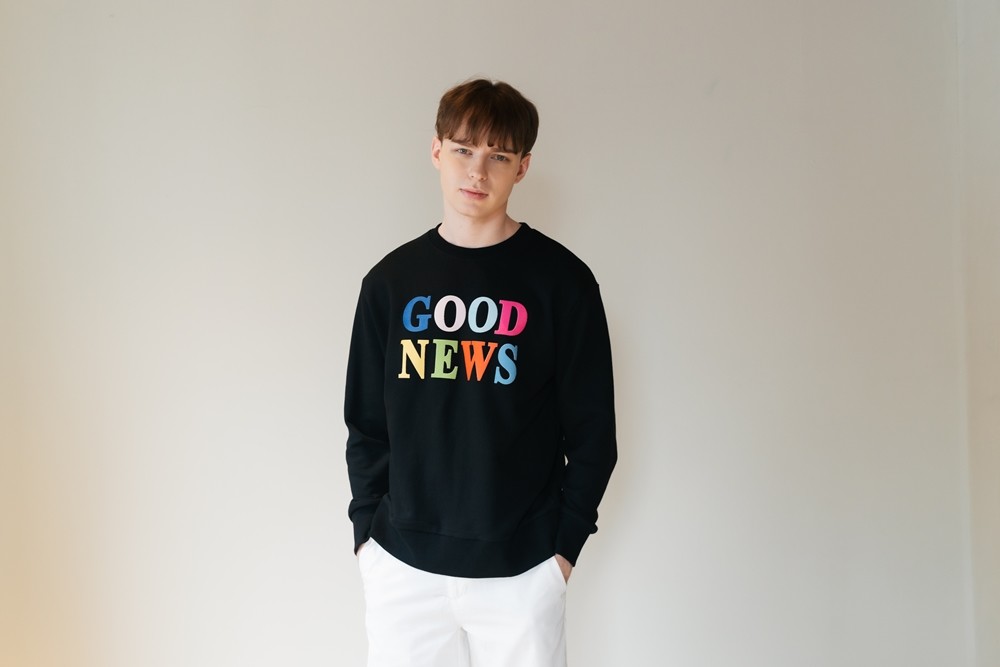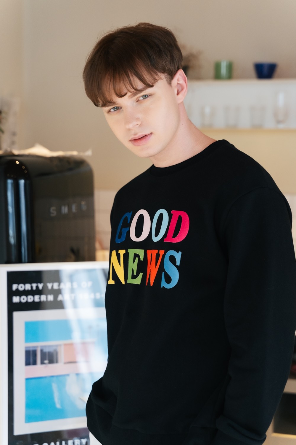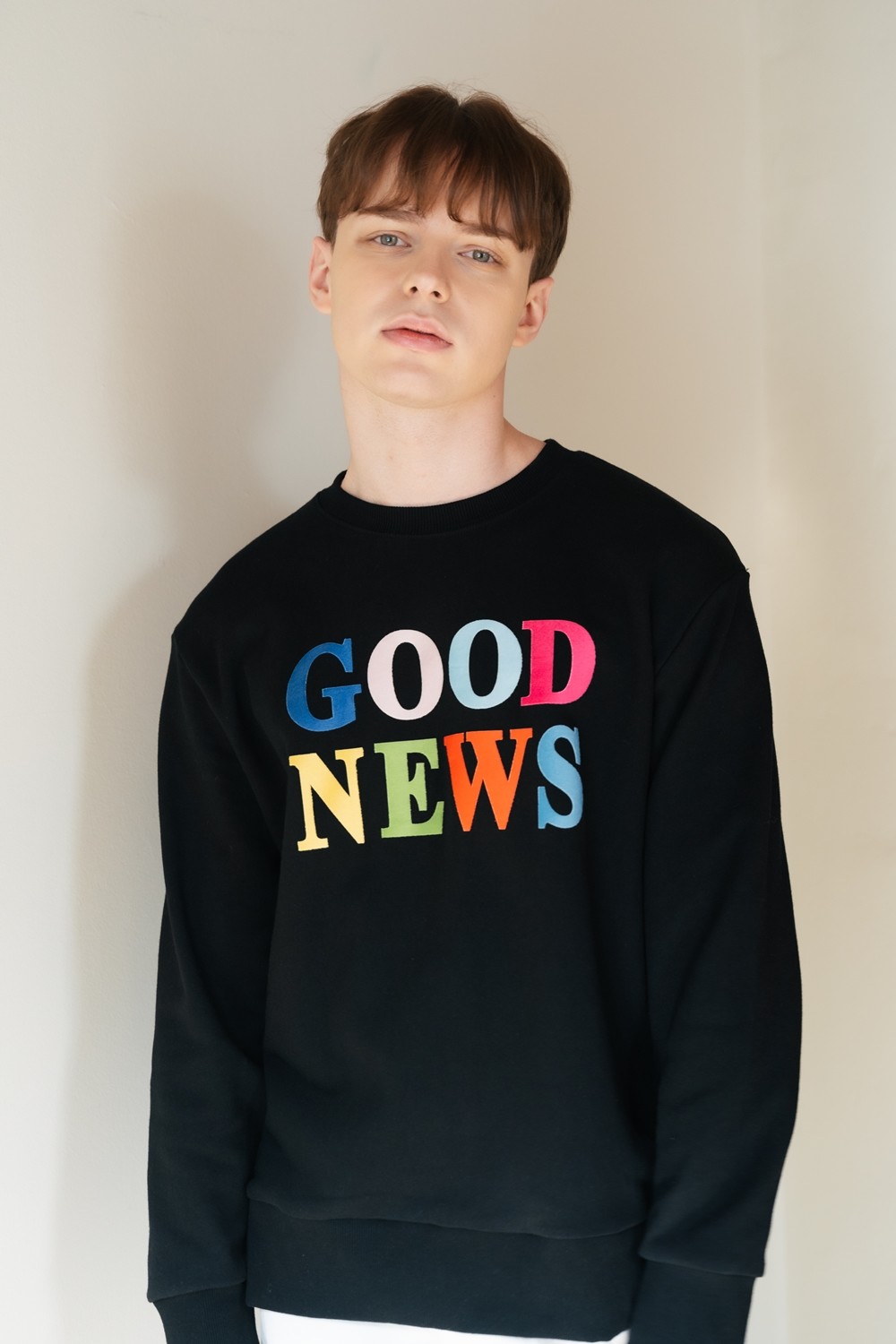 GOOD NEWS 맨투맨은 100% 천연 면 소재를 사용한 쭈리 원단으로 제작하였습니다.