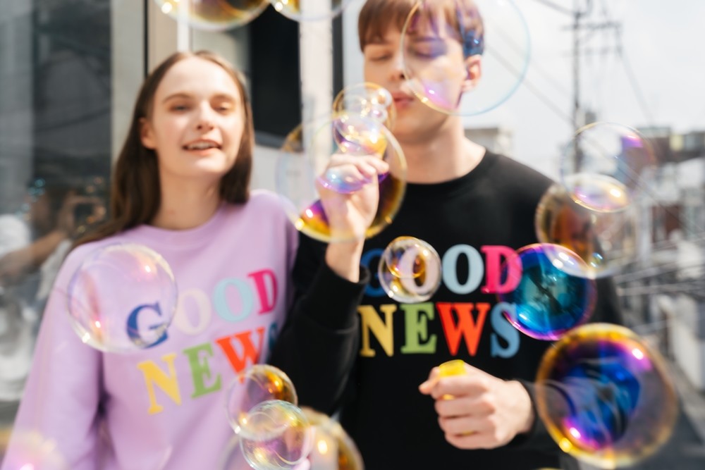 가슴 단면에는 컬러풀한 GOOD NEWS 레터링으로 산뜻한 느낌의 아트웍을 완성하였습니다.