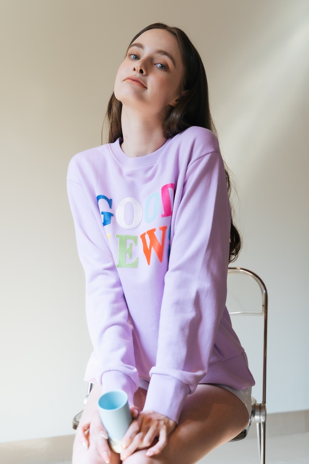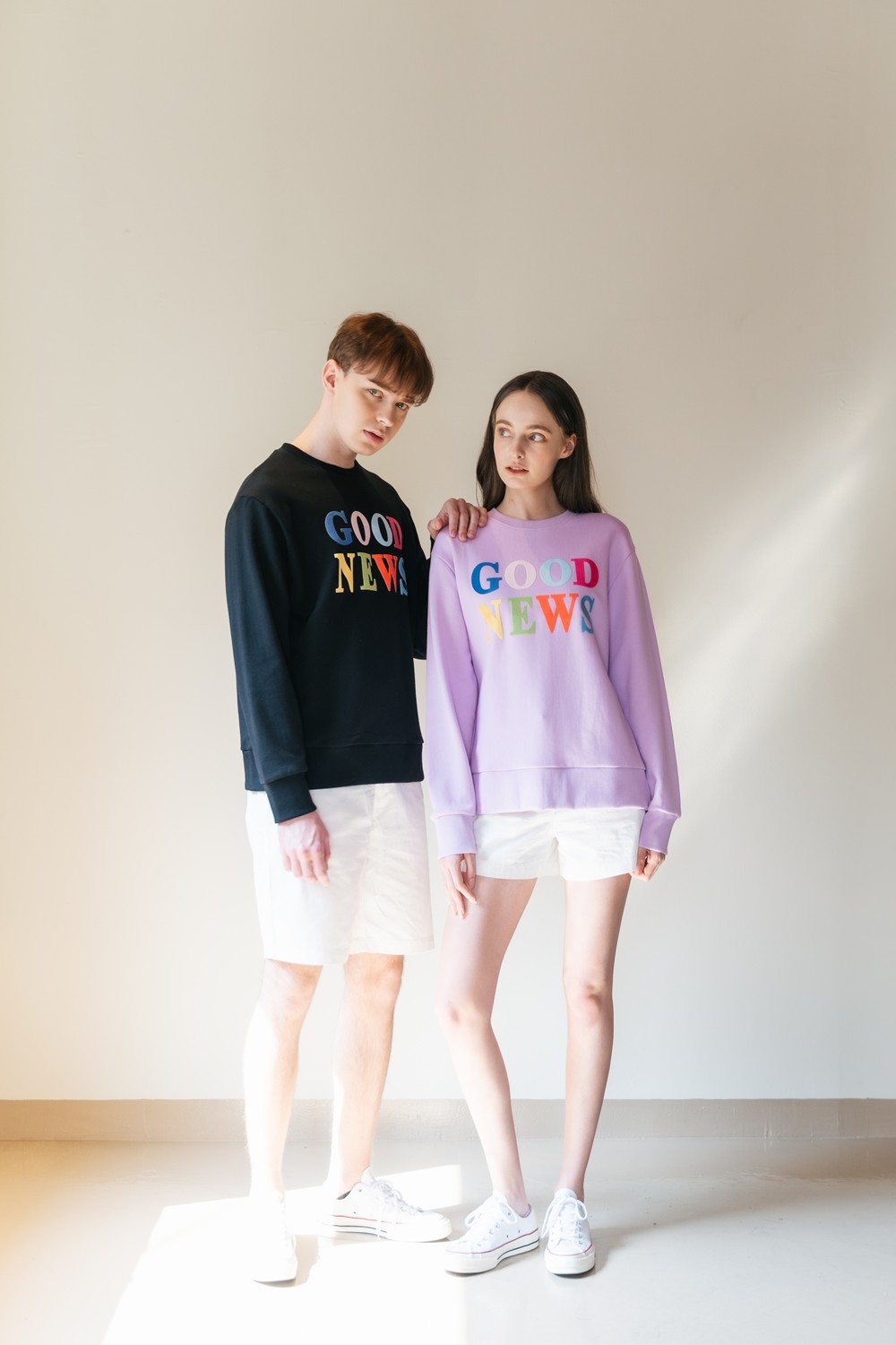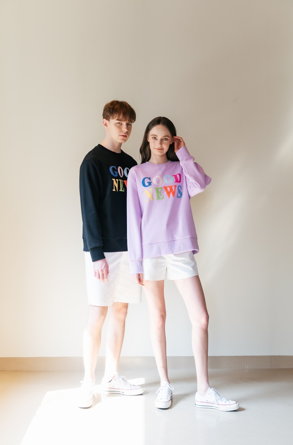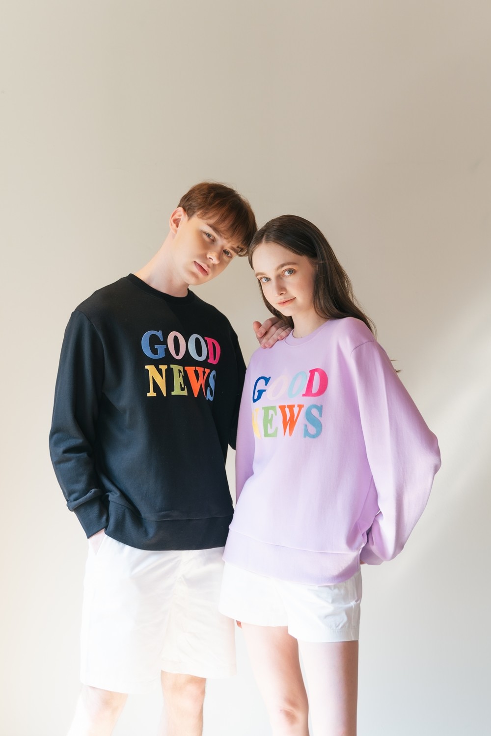 GOOD NEWS 맨투맨은 100% 천연 면 소재를 사용한 쭈리 원단으로 제작하였습니다.