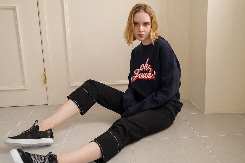 Oh Jesus 맨투맨은 100% 천연 면 소재를 사용한 쭈리 원단으로 제작하였습니다.