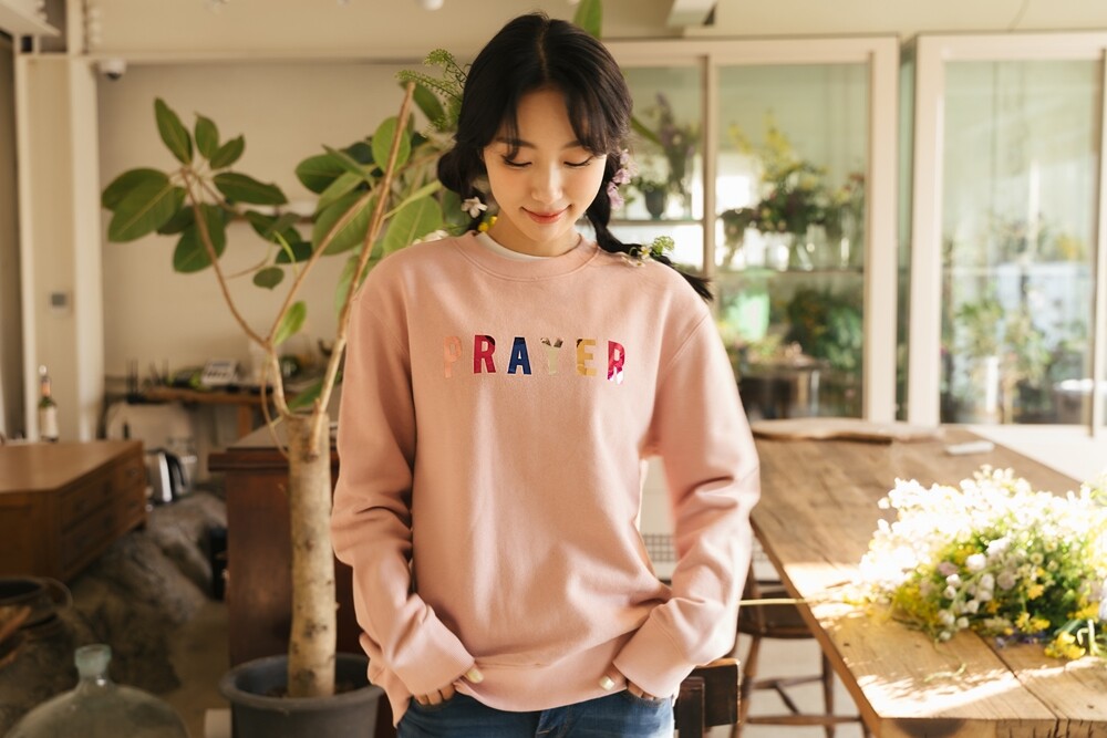 Prayer 맨투맨은 100% 천연 면 소재를 사용한 쭈리 원단으로 제작하였습니다.