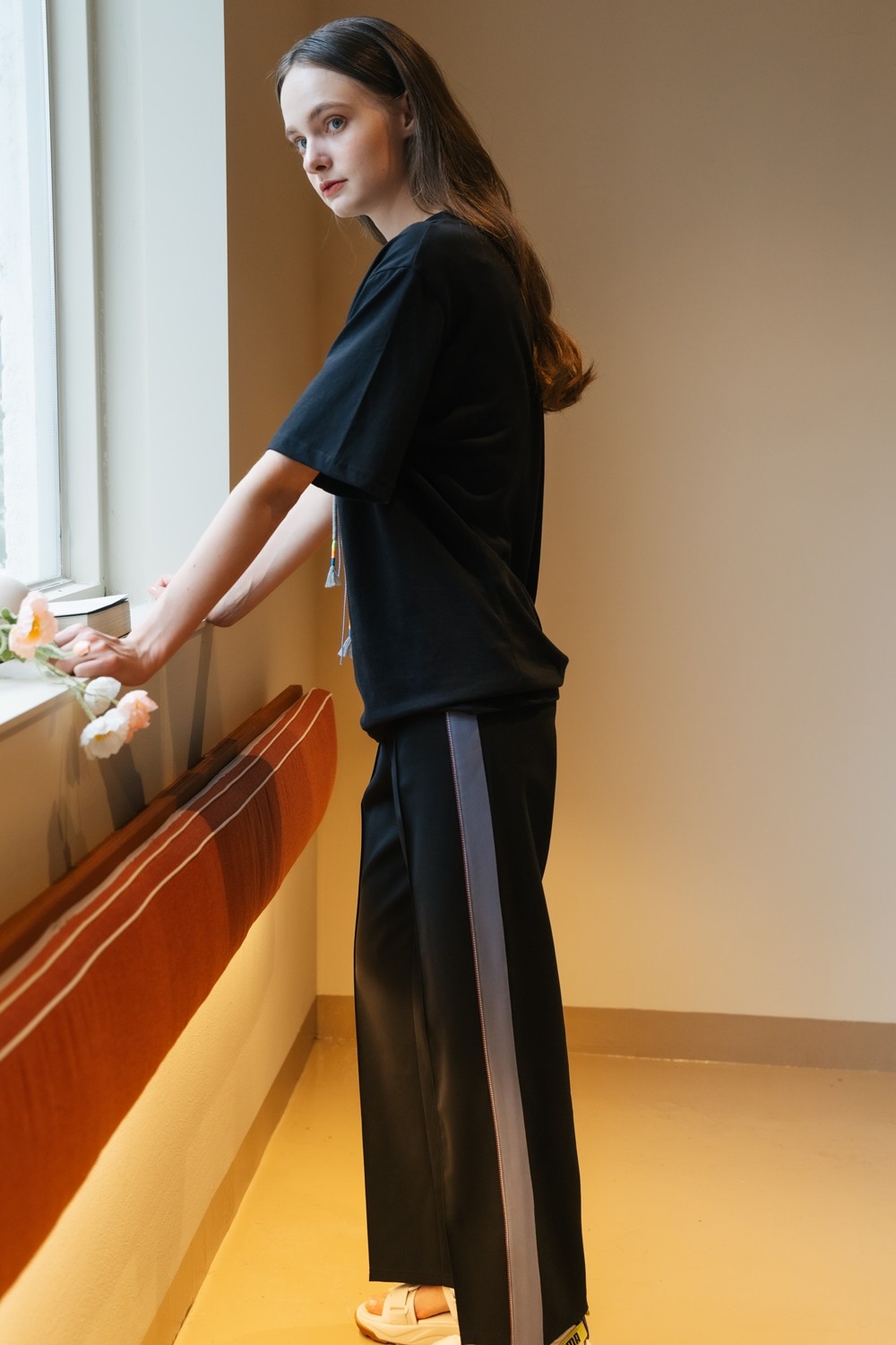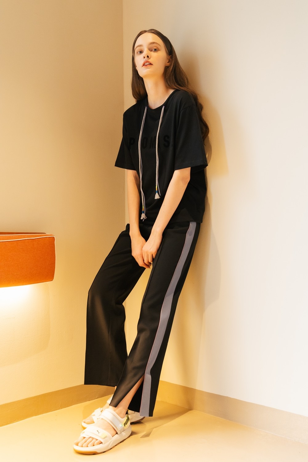 여성의 슬랙스에는 밑단의 슬릿이 스타일리쉬합니다.